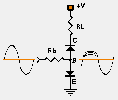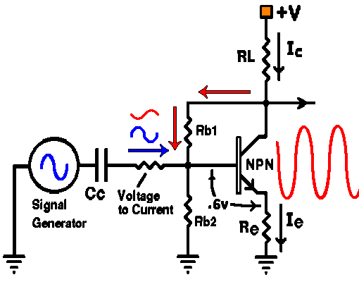~ 0.6 volts and the base in drawing current, i.e., any signal that appears