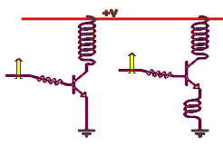 its collector, but is also seen at the other transistor's collector, enabled