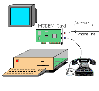 After the two MODEMs agree on a baud rate that gives the best speed with the least errors, the DATA from your computer and their computer--called a "Server" (it serves) are exchanged for username & password verification. Once your computer in logged on (login, connected, logged on), you can now do one of two things (three if you count "news groups"). |
