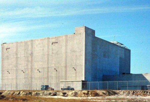 several stories underground. Gamma ray detectors mounted to outside structures.