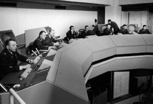 vacuum tubes in three bays of racks. The system would process the raw radar