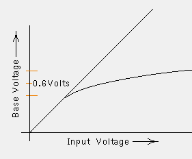 a constant 0.6 volt drop between the base and emitter, i.e., the base is