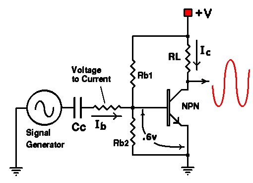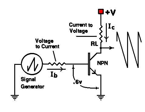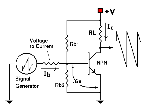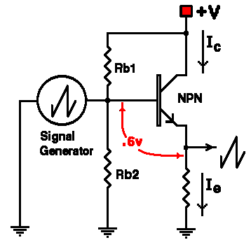 ~ 0.6 volts and the base in drawing current, i.e., any signal that appears