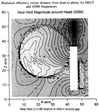 (1) Under the best conditions, less than 45% of Emitted R.F. Energy from the Cellphone is Propagated as a useful incident Signal: The Remaining Energy is Absorbed by the Head! (2) Presently the Frequencies used by the Cellular Handset are: 824 MHz - 849 MHz (3)