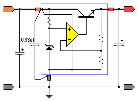 1..Read the data sheet. The needes and capabilities of the regulator are in there somewhere; they might not jump out and bite you right away, but they are there. 2..The use of three terminal linear voltage regulators, like the 78xx and 79xx devices, is fairly straightforward. However, there are a few things to remember: Always bypass -- there's that word again! -- the input pin and the common pin with a ceramic capacitor no smaller than 0.33 ufd, and use absolutely the shortest leads possible (there are some transistors with pretty high ft in that regulator, and if you furnish enough reactance of the wrong kind, Mr. Oscillation will visit you). 3..If your regulator is furnishing power to a capacitive load, and the primary power is removed -- like unplugging a PC card, or disconnecting an experimental setup -- the charge in that capacitive load will cause the secondary or output of the regulator to be more positive than the primary or input. If this reverse voltage exceeds the regulator's ratings it will blow up. To prevent this sort of failure, a diode is placed between the input and output, such that, when reverse voltages are present, the diode conducts preventing damage. (see Figure) 4..There will come a day (or night) when you may need an eight volt regulator, and all you have is a 7805, five volt regulator. By inserting a voltage equal to the difference in the common lead, "Voila," you have 8 volts. You can do this by inserting a zener diode or a low resistance voltage divider (or a pot for variability). If all else fails, insert a series of silicon diodes (cathodes toward Grd.) @ .6 volts per, until you have the desired output. 5..These regulators don't need an output capacitor per se, but a minimum of 1 ufd is recommended to prevent fast load pulses from causing needless error correction by the regulator. As for the primary or input capacitance, it depends on the ripple content from the primary voltage: If the voltage is straight from the rectifier, then obviously large capacitors are required -- assuming a large load on the regulator's output. The greater the difference between the input voltage and the output voltage, the less stringent the capacitor requirements. 6...In the data sheet -- you know, that funny looking piece of paper that causes you to squint, and makes your head feel funny -- In the data sheet, there is information on forward drop, Vfwd, of the regulator at some current. This means that if the primary voltage is near the desired secondary voltage at some current, you may be in "Deep Dudu." The greater the difference between the input voltage and the output voltage, the easier life is: if the rating of the regulator is a 1.1 volt drop at 500 ma, and you have a 5 volt margin -- say -- you are in fairly good shape; if you have, on the other hand, a 10 volt margin, you're in great shape! |